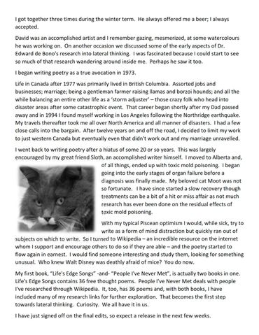 While numerous people have provided me fodder for my writings - perhaps unknowingly, I do acknowledge and thank them now. No names though.